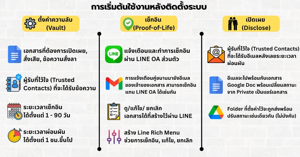 ในวันที่เรา “ไม่ได้อยู่บนโลกนี้แล้ว” ระบบจะทำหน้าที่ส่งข้อมูลที่เตรียมไว้ให้คนที่เราไว้วางใจโดยอัตโนมัติ