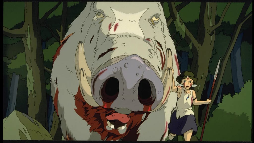 งานภาพของ Princess Mononoke คือการผสมผสานระหว่างความสง่างามของธรรมชาติกับความโหดร้ายของสงคราม มันคือบทกวีแห่งเลือดและโคลนที่ถูกเขียนด้วยพู่กันของกวีและนักรบในคนเดียวกัน ภาพหมอกสีเขียวที่คลุมป่า เสียงลมหายใจของเทพหมาป่า การกระพือของฝุ่นจากฝูงหมูป่าที่บุกเมืองเหล็ก—ทุกอย่างถูกวาดอย่างมีชีวิต ราวกับธรรมชาติกำลังร้องไห้