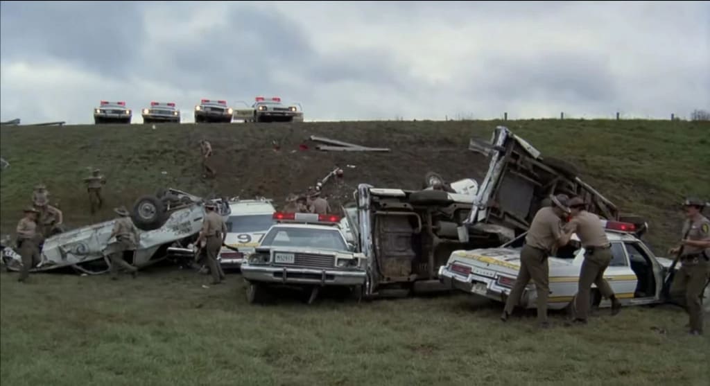 ฉากขับรถไล่ล่าในเรื่องนี้ถูกบันทึกไว้ในประวัติศาสตร์ภาพยนตร์ว่าเป็นหนึ่งในฉากที่บ้าคลั่งที่สุด การใช้รถตำรวจจริงนับร้อยคันมาไล่กวดกันจนพังยับเยิน โดยเฉพาะฉาก “การไล่ล่าในห้างสรรพสินค้า” (The Mall Chase) ที่ขับรถลุยเข้าไปในห้างจริงจนข้าวของกระจุยกระจายโดยไม่มีการใช้ CGI ใดๆ ทุกอย่างคือการขับจริง ชนจริง