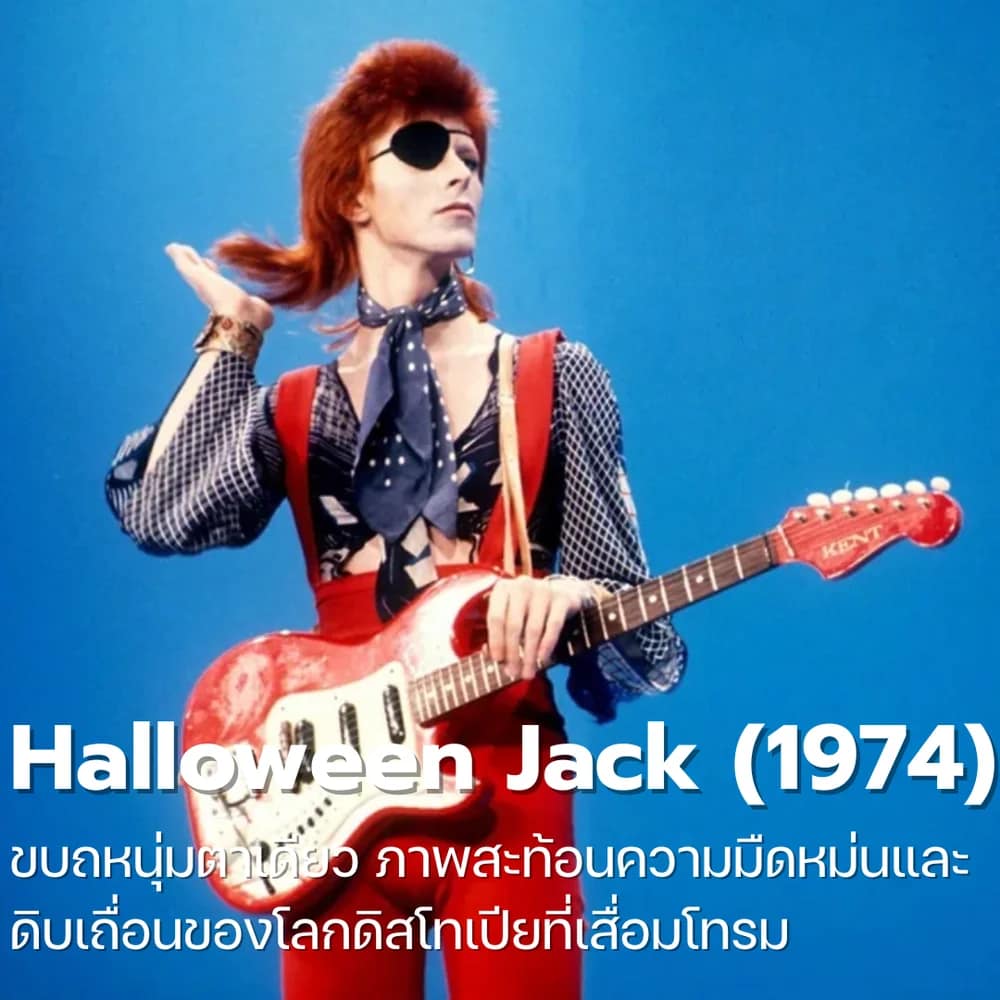 เมื่อยุคของดนตรีแกลมร็อกเริ่มถึงจุดอิ่มตัว Bowie จึงหันเข้าสู่ความมืดหม่นด้วยการสร้าง Halloween Jack ขึ้นมา คาแรคเตอร์นี้คือเด็กหนุ่มขบถที่สวมผ้าปิดตาข้างหนึ่ง และมีผ้าพันคอสุดเท่ เขาคือผู้รอดชีวิตที่อาศัยอยู่ในเมืองสมมติยุคดิสโทเปียที่เสื่อมโทรมและเต็มไปด้วยความป่าเถื่อน ซึ่งได้รับแรงบันดาลใจหลักมาจากวรรณกรรมคลาสสิกเรื่อง 1984 ของ George Orwell Halloween Jack เป็นตัวแทนของการเสียดสีสังคมและความกังวลต่ออนาคตของมนุษยชาติ ดนตรีในอัลบั้ม Diamond Dogs ยุคนี้มีความดิบเถื่อนขึ้น ผสมผสานระหว่างร็อกแอนด์โรลและโซลที่สะท้อนบรรยากาศของโลกล่มสลาย คาแรคเตอร์นี้แสดงให้เห็นถึงความอัจฉริยะของเขาในการหยิบยกประเด็นการเมืองมานำเสนอผ่านศิลปะกึ่งละครเวทีได้อย่างแนบเนียน