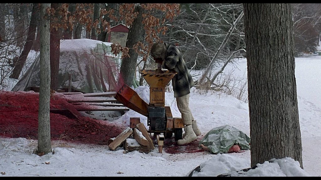 ฉากที่ได้รับการกล่าวขานมากที่สุดและเป็นจุดสูงสุดของความตลกร้ายแบบโคเอน คือฉาก “เครื่องบดกิ่งไม้” (The Woodchipper Scene) เมื่อมาร์จตามแกะรอยจนไปพบเกียร์กำลังยัดร่างอันไร้วิญญาณ (และยับเยิน) ของคาร์ลลงในเครื่องบดกิ่งไม้กลางทุ่งหิมะ เศษเนื้อและเลือดสีแดงพุ่งกระฉูดออกมาย้อมหิมะขาวโพลน ฉากนี้คือบทสรุปทางปรัชญาของภาพยนตร์เรื่องนี้โดยสมบูรณ์ มนุษย์เรา ไม่ว่าจะทะเยอทะยาน โลภหลง หรือดิ้นรนเพียงใด ท้ายที่สุดเมื่อความตายมาเยือนและไร้ซึ่งคุณค่าทางศีลธรรม ร่างกายของเราก็มีค่าไม่ต่างอะไรกับท่อนไม้โง่ๆ ที่ถูกบดละเอียดและพ่นทิ้งไปอย่างไร้ความหมาย มันคือความน่าสะพรึงกลัวที่ห่อหุ้มด้วยความตลกขบขันอันดำมืด (Black Comedy) ที่ไม่มีใครทำได้ถึงแก่นเท่าพี่น้องโคเอน